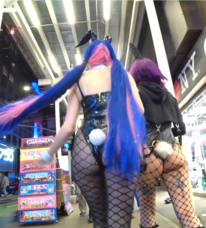 Only thing the one on the left needed to get that damn HAIR out of the way… Her shape was out of this fuckin WORLD…!!! She shouldn’t have been hiding not ONE INCH of it.. not even w/ hair. Throw that shit in the front!! smfh…Y’all know what it is? I figured it out… These types of outfits were NOT socially acceptable @ all back then… That’s why all these bite-sized hunnies were going pretty much unnoticed! Plenty of them had nice, incredible curvy shapes, just not that MASSIVE, pearshaped DONKULAR madness on them. So they’d walk past everybody quietly… WHEW!!! How these times have changed!!! Now, we got NVGN wedged leggings, see-thru leggings, regular leggings they wedge themselves before coming out the house, ???